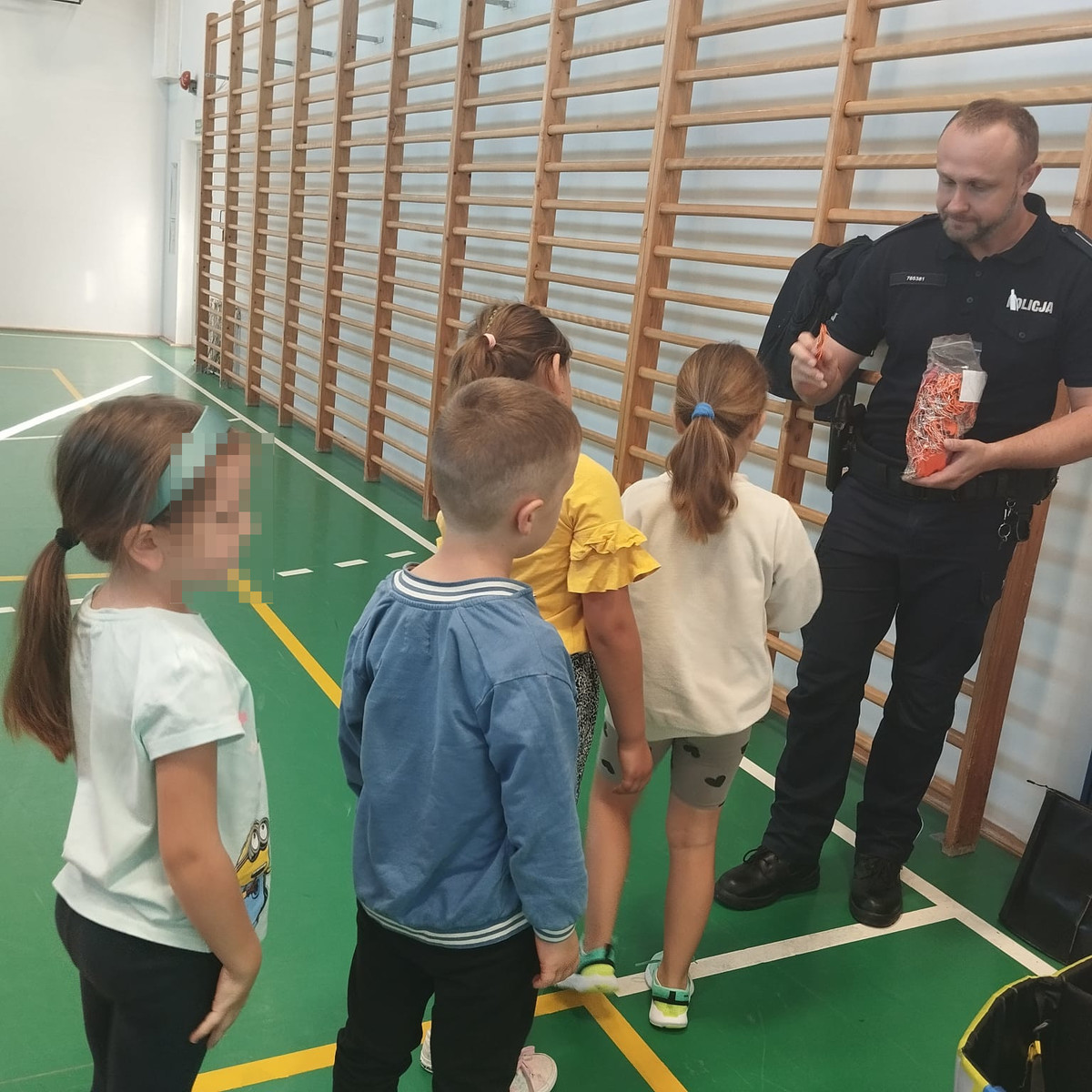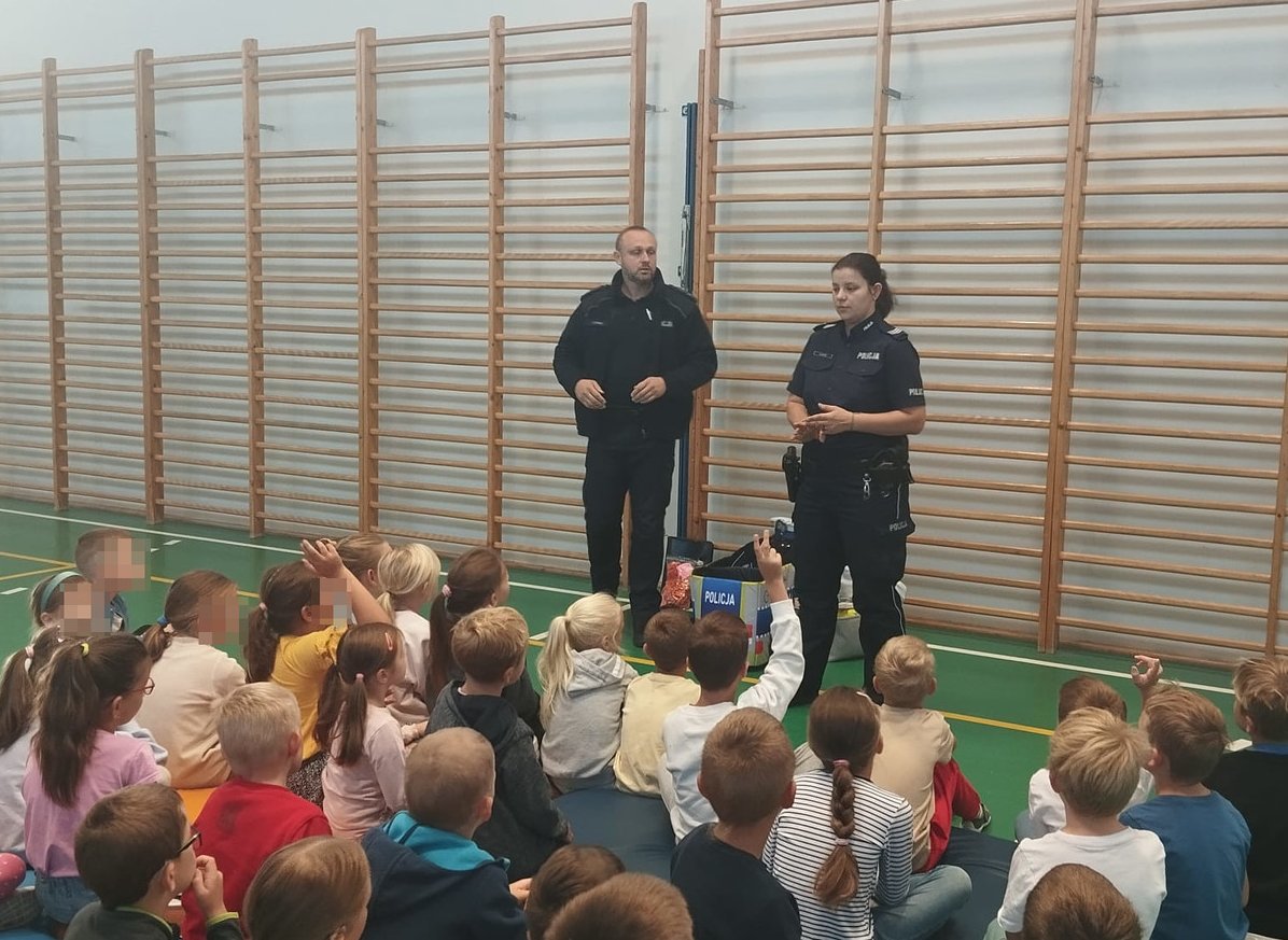 W czwartek funkcjonariusze odwiedzili uczniów Szkoły Podstawowej w Wołowicach. W pierwszej kolejności spotkali się dziećmi klas 0-III, z którymi przeprowadzili pogadankę na temat bezpiecznej drogi do szkoły oraz tego żeby każdy uczeń był widoczny na drodze dzięki noszeniu odblasków. Mundurowi uczyli dzieci jak bezpiecznie poruszać się na rowerze czy hulajnodze, a także odpowiadali na najbardziej nurtujące pytania najmłodszych. Dzieci dowiedziały się wszystkiego na temat numeru alarmowego 112 – jakie są najważniejsze zasady wzywania pierwszej pomocy i jak zachować się w sytuacji zagrożenia. Na koniec uczniowie otrzymali upominki w postaci elementów odblaskowych, które będą mogli zawiesić na swoich plecakach, dając przy tym dobry przykład innym uczestnikom drogi. Następnie policjantka i dzielnicowy zaprosili na wykład starszych uczniów z klas VII i VIII. Tej grupie również przypomnieli najważniejsze zasady bezpiecznej drogi do szkoły oraz bezpieczeństwa podczas jazdy rowerem i hulajnogą elektryczną. Dostosowując tematykę do grupy wiekowej młodzieży, poruszyli takie zagadnienia jak cyber zagrożenia, bezpieczne korzystanie z Internetu, hejt, jak również handel ludźmi. Zajęcia były bardzo ciekawą i ważną lekcją na temat bezpieczeństwa.