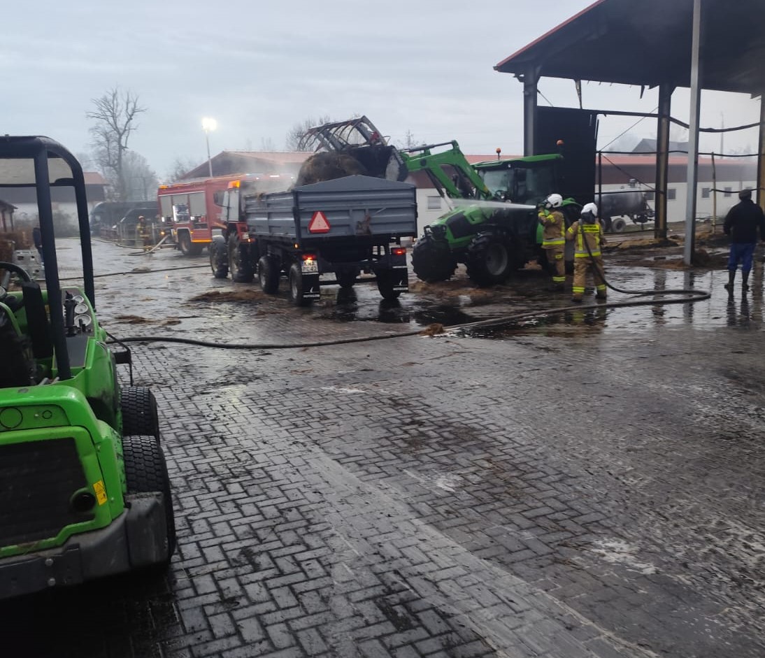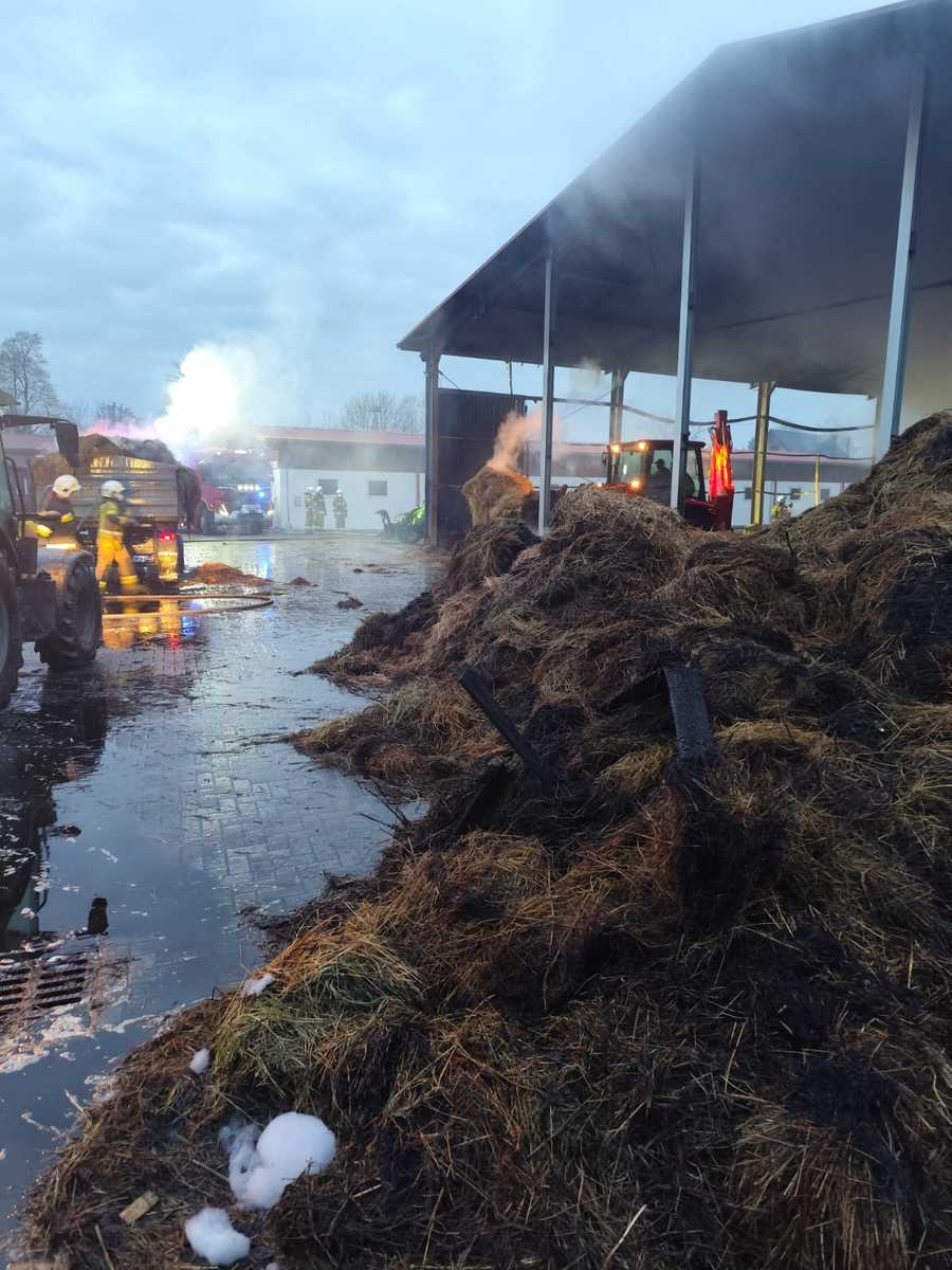 Zniszczeniu uległ budynek gospodarczy pełen siana i słomy. Jak ustalono były to zapasy na zimę dla 100 koni. W budynku objętym pożarem znajdował się także sprzęt rolniczy. Właściciele oszacowali straty na blisko 2,5 miliona złotych. Budynek gospodarczy został w całości objęty ogniem. Akcja gaśnicza była trudna i trwała wiele godzin. Pożaru długo nie udawało się opanować. Na miejscu działało kilkanaście jednostek strażackich OSP i JRG. Na czas działań strażackich powstały utrudnienia w ruchu. W działania zaangażowani byli również policjanci.