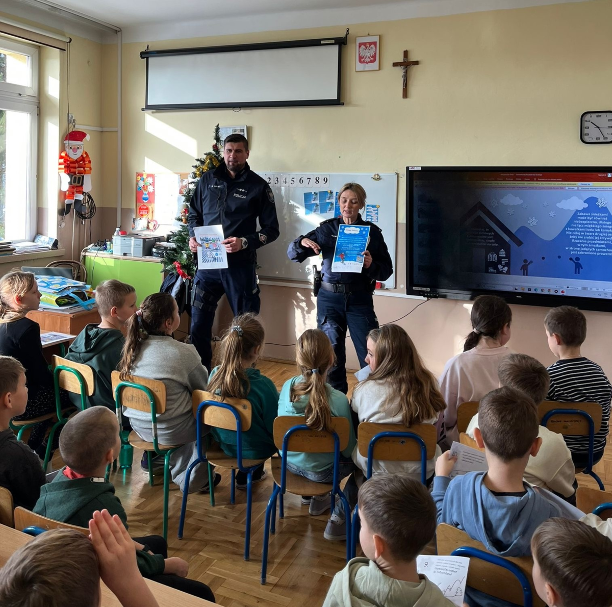 W piątek, 16 stycznia br. policjanci odwiedzili uczniów ze Szkoły Podstawowej w Sieciechowicach, żeby porozmawiać o bezpieczeństwie zimą.