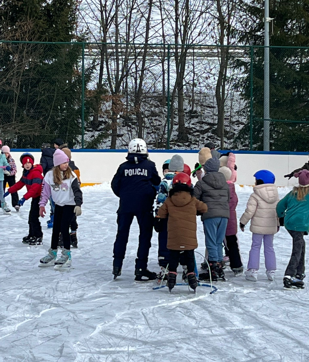 W kampanię "Kręci mnie bezpieczeństwo w zimie" włączyli się również policjanci z Komendy Powiatowej Policji w Krakowie. asp. Anna Trzcionka – Domagała z Wydziału Prewencji oraz dzielnicowy z Komisariatu Policji w Skale spotkali się z uczniami z Sieciechowic. W pierwszej kolejności funkcjonariusze przeprowadzili prelekcję dla uczniów klas I-III. Dzieci dowiedziały się najważniejszych zasad bezpieczeństwa podczas zimowego spędzania czasu, oraz szeroko rozumianego bezpieczeństwa na drodze. W sposób dostosowany do wieku uczniów policjanci poruszali także temat cyberzagrożeń. Mundurowi zapoznali dzieci z konkursem plastyczno – filmowym, ogłoszonym w ramach tej kampanii pn. „Zimowy dekalog”, który promuje bezpieczne zachowania oraz aktywny tryb życia. Uczestnicy otrzymali kolorowanki z zasadami konkursu oraz odblaski. Po dużej dawce edukacji przyszedł czas na aktywność na świeżym powietrzu, a dokładnie na lodowisku. Dzięki zaangażowaniu policjantów, był to dzień pełen wiedzy i emocji dla uczniów ze Szkoły w Sieciechowicach.