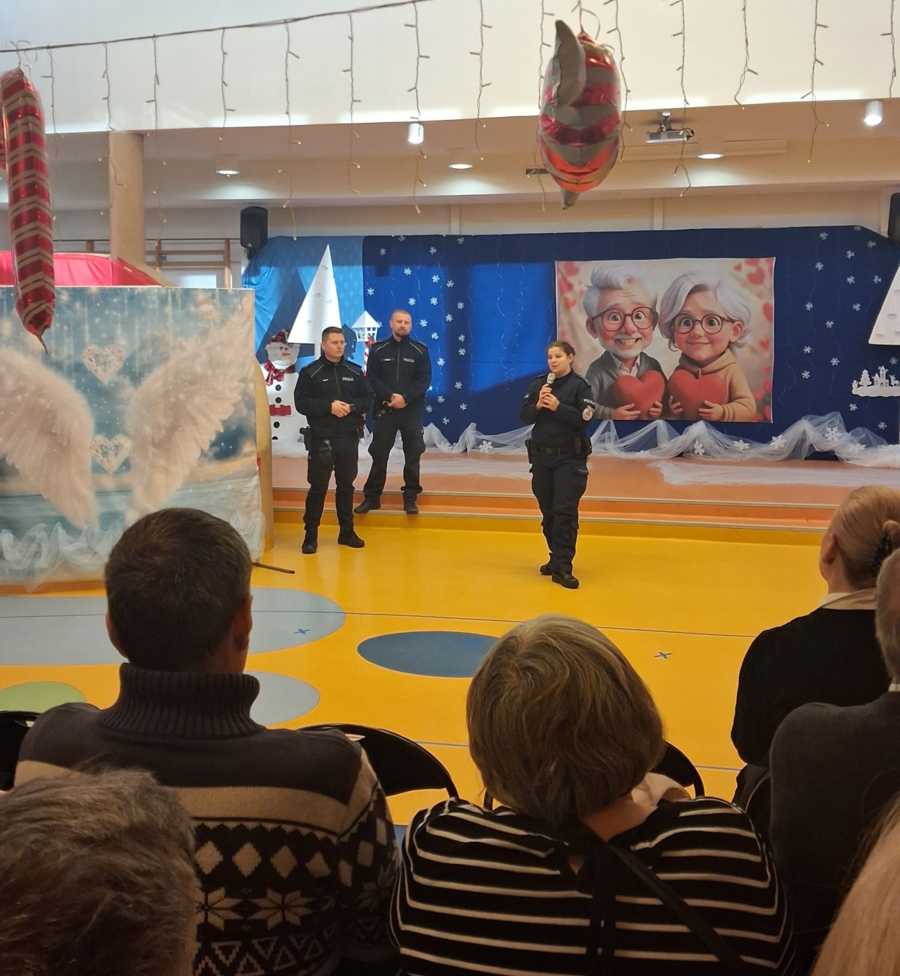 Policjantka z Wydziału Prewencji Komendy Powiatowej Policji w Krakowie wspólnie z dzielnicowym z Komisariatu Policji w Słomnikach zorganizowali trzy spotkania z seniorami podczas obchodów Dnia Babci i Dziadka w Przedszkolu Samorządowym w Słomnikach. Policjanci wykorzystali moment, gdy w jednym miejscu zgromadziła się duża grupa babć i dziadków, z którymi rozmawiali o bezpieczeństwie. Funkcjonariusze przypominali o najczęściej stosowanych metodach oszustw wymierzonych w osoby starsze, apelując o ostrożność, rozwagę i ograniczone zaufanie wobec nieznajomych. Mundurowi nawiązali także do kampanii społecznej pn. „Ustal z Babcią hasło”, zachęcając seniorów, aby wspólnie z bliskimi ustalili proste, znane tylko najbliższej rodzinie hasło lub zwrot, który w razie niespodziewanego telefonu od oszustów pozwoli szybko zweryfikować z kim rozmawiamy. Nie zabrakło też rozmów na temat bezpieczeństwa w ruchu drogowym, prawidłowym poruszaniu się pieszych, noszeniu odblasków po zmroku oraz o zagrożeniach związanych z zimą i niskimi temperaturami. Funkcjonariusze z dużym zaangażowaniem przedstawili uczestnikom wszystkie tematy, włączając również swoje osobiste doświadczenia ze służby oraz przykłady różnych zdarzeń, co wpłynęło na niezwykle ciekawą i pouczającą prelekcję. Na zakończenie rozdano materiały edukacyjne, które przypominają o zasadach bezpieczeństwa oraz skierowano do seniorów życzenia zdrowia, pogody ducha oraz wszelkiej pomyślności.