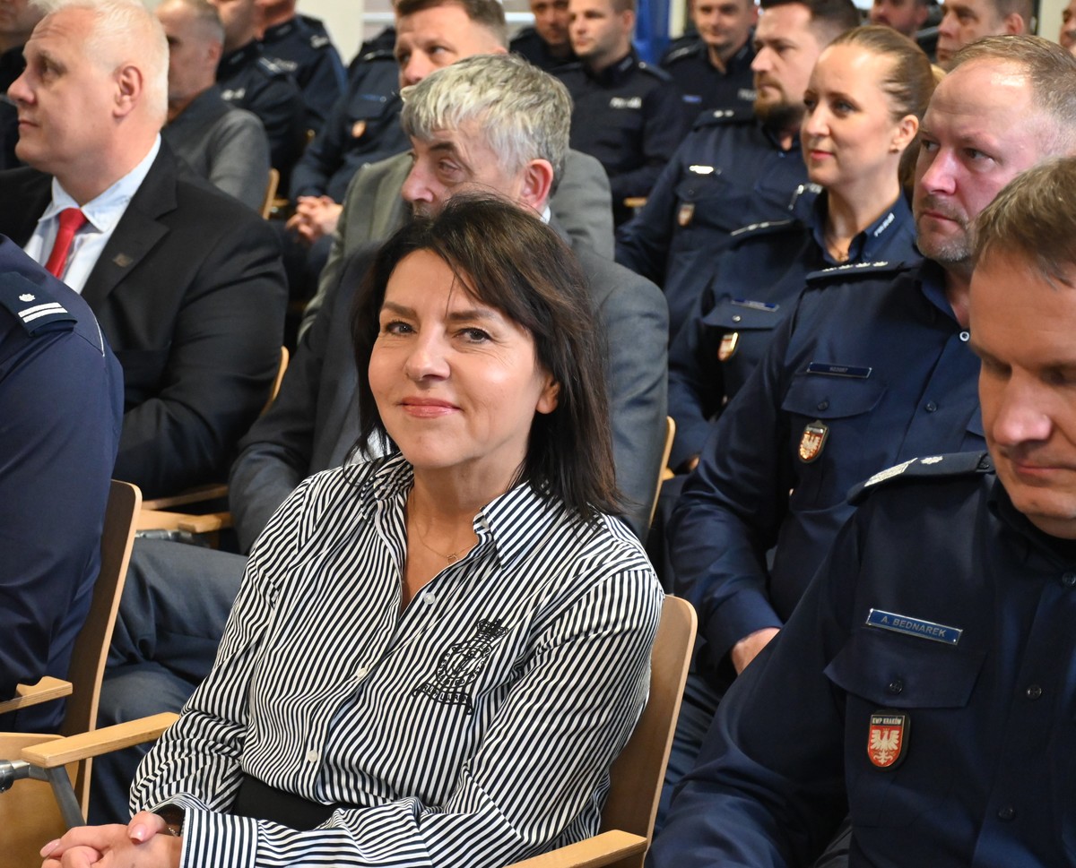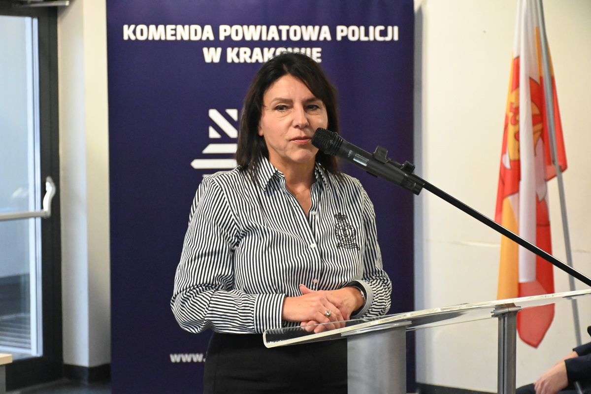 Na zakończenie głos zabrała pani Elżbieta Burtan Starosta Krakowski, która w imieniu swoim i wszystkich samorządowców podziękowała Komendantowi Powiatowemu za znakomity rok i pogratulowała osiągniętych wyników na rzecz poprawy bezpieczeństwa. Pani Starosta omówiła pomoc i wsparcie finansowe jakie zostało przekazane Komendzie Powiatowej w Krakowie oraz skierowała słowa uznania i podziękowania dla wszystkich policjantów za ich codzienną służbę.
