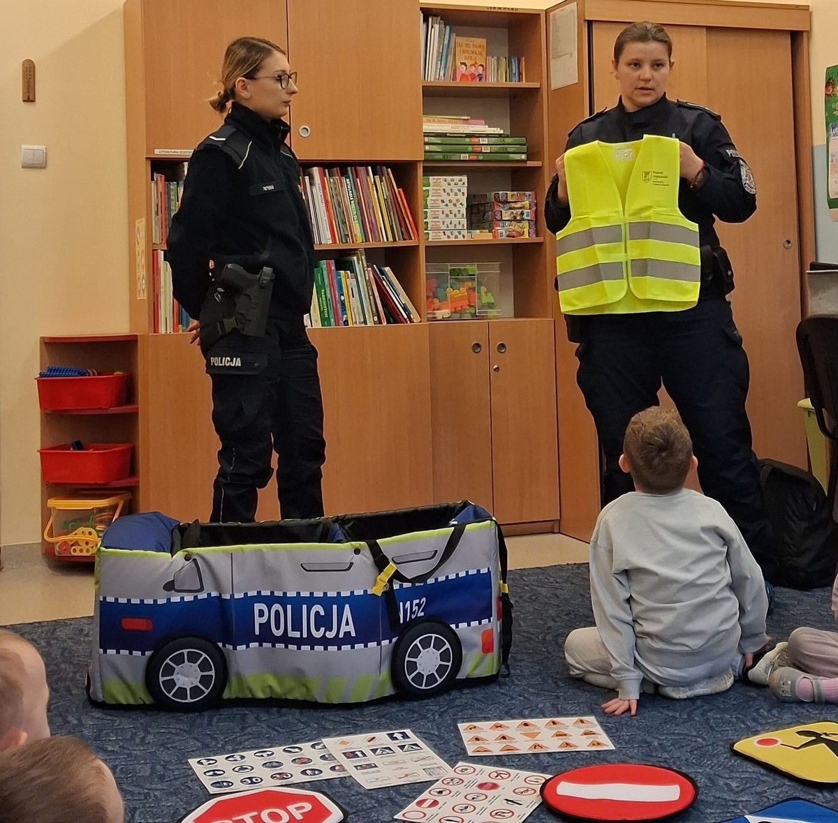 Podczas wizyty mundurowi rozmawiali z przedszkolakami o zasadach bezpiecznego zachowania w czasie zimowych zabaw. Dzieci dowiedziały się m.in., jak bezpiecznie poruszać się po drogach zimą, dlaczego należy unikać wchodzenia na zamarznięte zbiorniki wodne oraz jak zachować ostrożność podczas zabaw na śniegu i lodzie. Funkcjonariusze zwrócili uwagę na bezpieczeństwo w domu i po za nim podkreślając istotną rolę znajomości numerów alarmowych, zachowania podczas kontaktu z osobami obcymi czy też z agresywnymi zwierzętami. Spotkanie miało charakter edukacyjny i profilaktyczny.