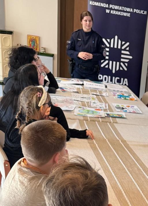 Policjanci z Wydziału Prewencji Komendy Powiatowej Policji w Krakowie spotkali się z dziećmi z Rodzinnego Domu Dziecka „Dar Serca” w Skawinie rozmawiając o bezpieczeństwie w sieci.
