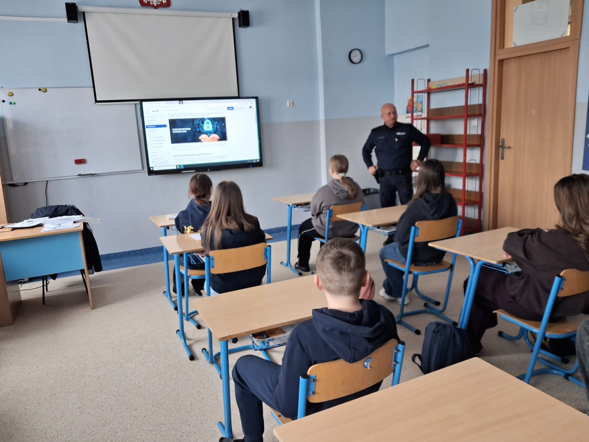 Policjanci przeprowadzili prelekcję, rozmawiając z uczniami o bezpieczeństwie w sieci. Omówione zostały najważniejsze zagrożenia oraz jak ich unikać czyli cyberprzemoc, manipulacja emocjonalna, niebezpieczne znajomości, uzależnienie od Internetu czy niekontrolowane i nadmierne udostępnianie swojego wizerunku. Uczestnicy poznali „Dekalog cyfrowego obywatela” czyli prawa i obowiązki dla korzystających z sieci. Funkcjonariusze przestawili także temat odpowiedzialności karnej nieletnich za popełnione czyny karalne oraz jakie środki może wtedy zastosować sąd. Uczniowie wykazali się dużym skupieniem i zainteresowaniem przekazanych treści.