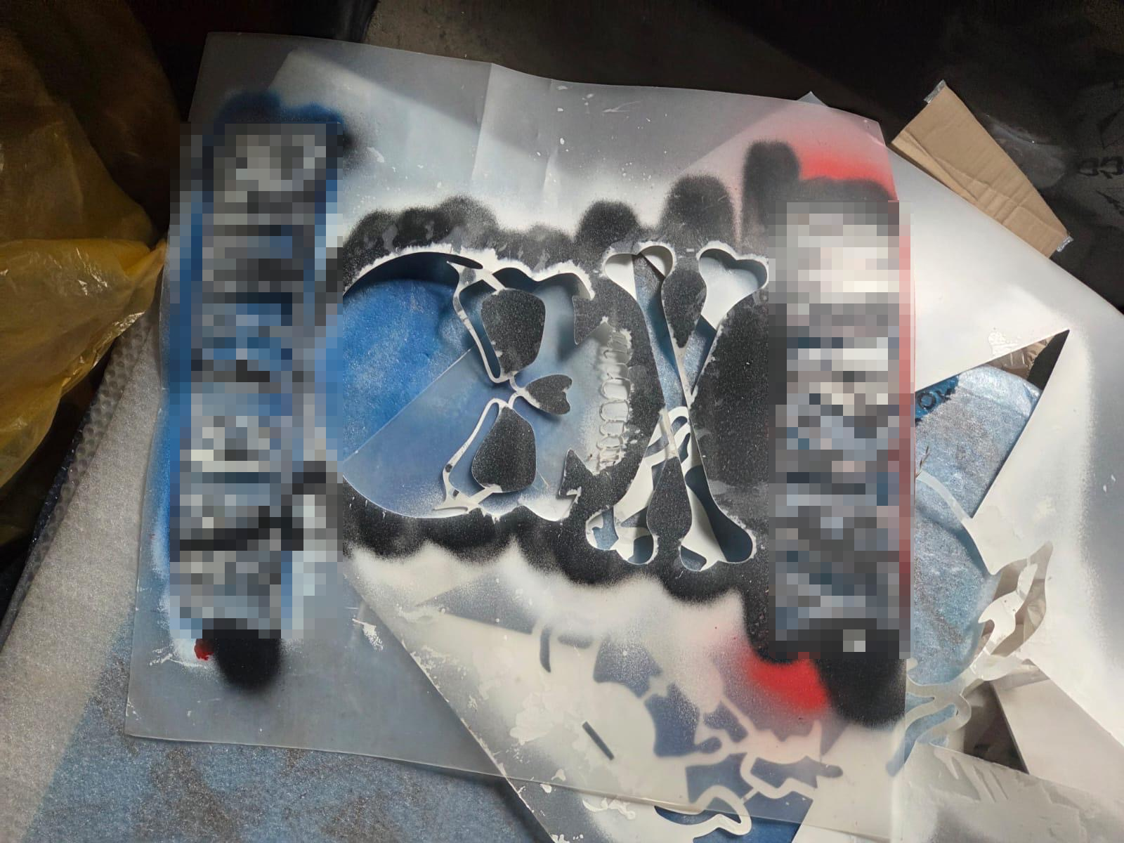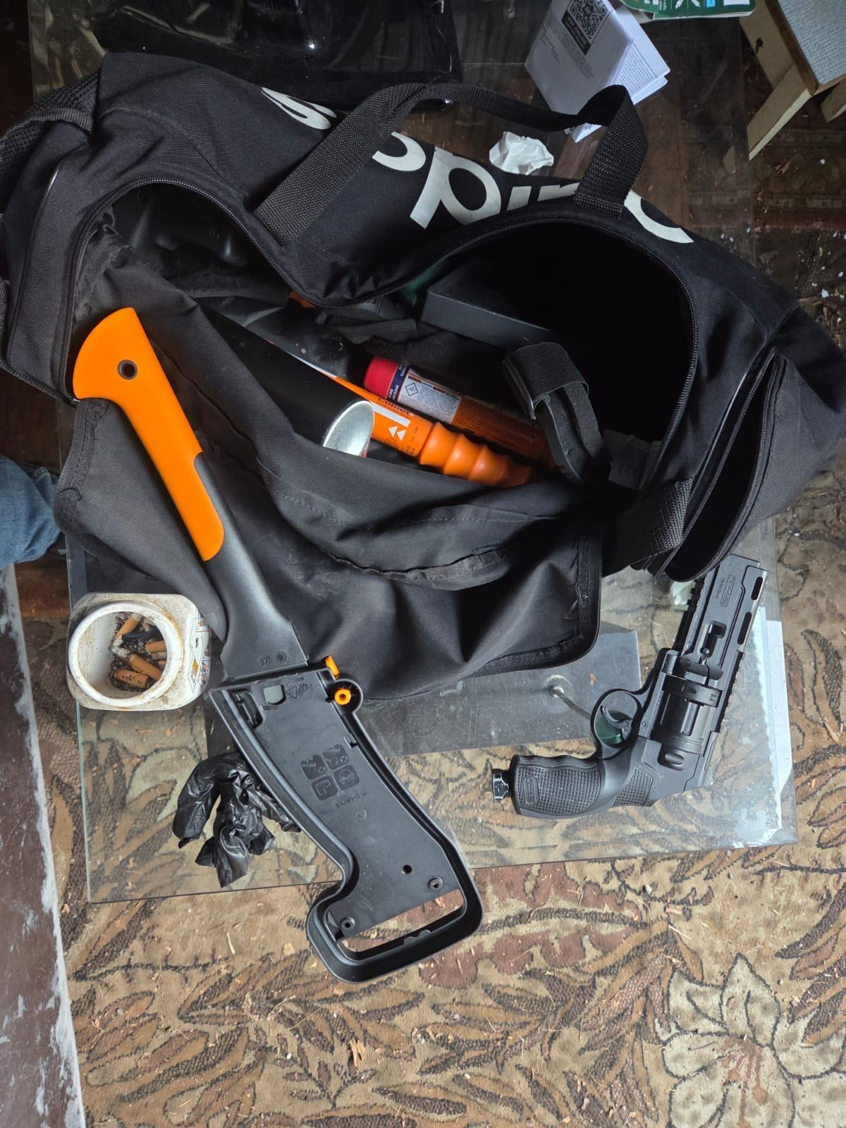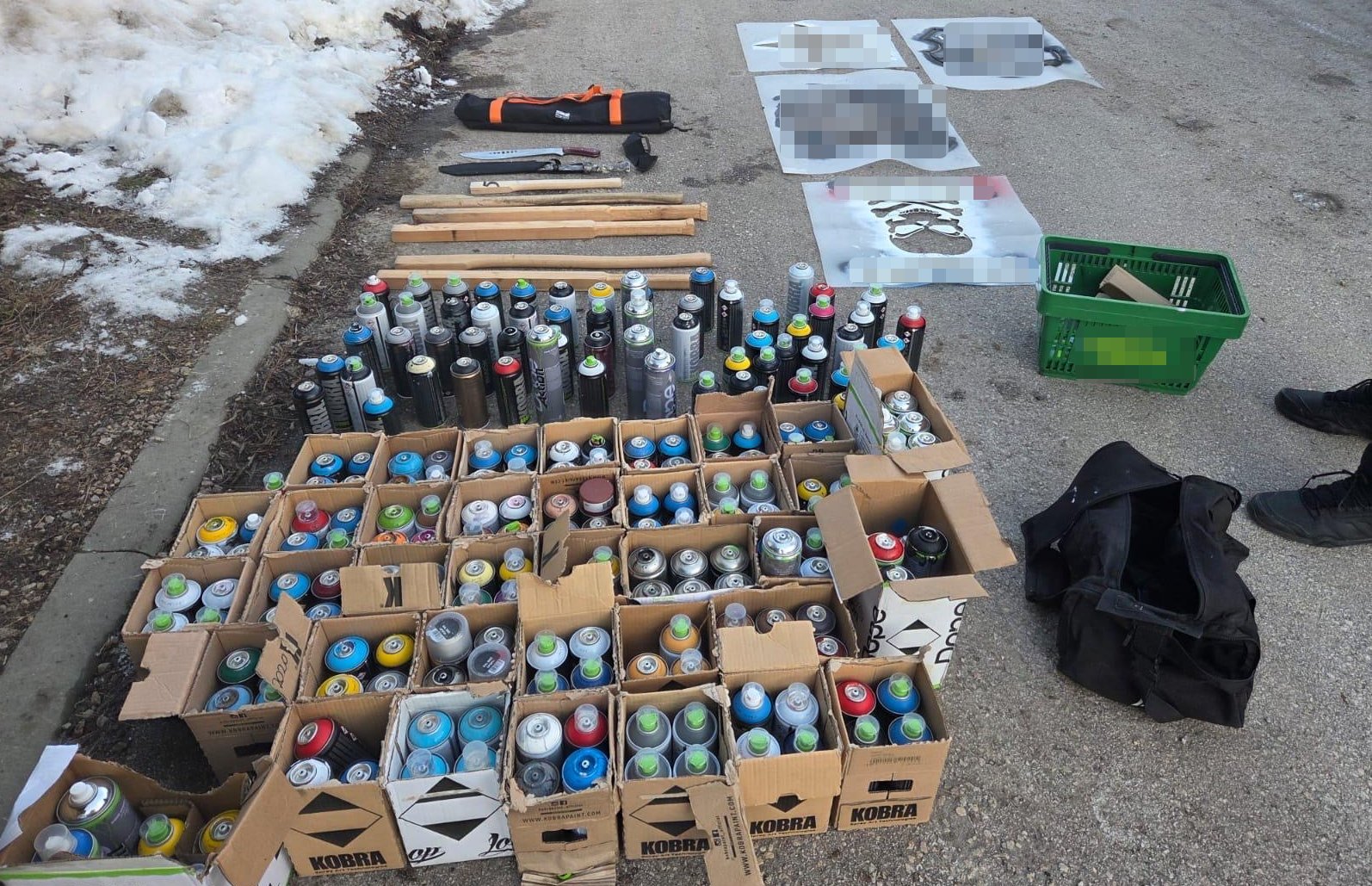 19 lutego br. dyżurny Komisariatu Policji w Słomnikach został powiadomiony o tym, że nieznani sprawcy uszkodzili aż dwa budynki na terenie Słomnik, malując na nich graffiti. Policjanci niezwłocznie podjęli działania. Już następnego dnia sprawcy tych przestępstw zostali zatrzymani. To pseudokibice jednego z krakowskich klubów. Podczas przeszukań w miejscach ich zamieszkania funkcjonariusze ze Słomnik zabezpieczyli farby w sprayu. W trakcie prowadzonych czynności ustalili, że znalezione w domach farby to nie wszystko czym „dysponują” zatrzymani. Dotarli do garażu, który użytkuje jeden z zatrzymanych, a do którego początkowo się nie przyznawał. To właśnie tam mundurowi natrafili na ogromną ilość farb w sprayu, szablonów, przedmioty przypominające broń palną oraz maczety.