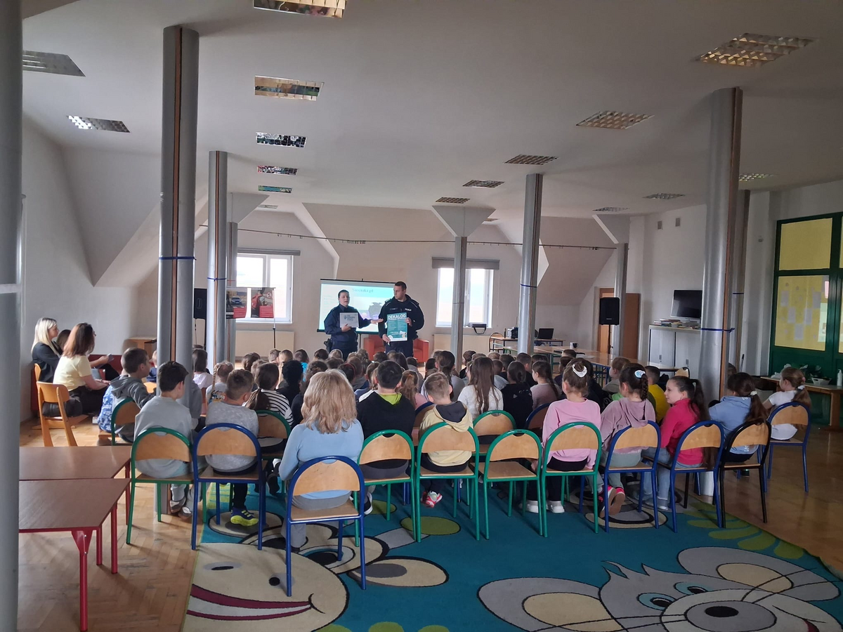 Funkcjonariusze przeprowadzili prelekcję w klasach II-VIII, dostosowując tematykę do wieku uczniów. Tematem przewodnim spotkania był „Dzień bezpiecznego internetu”, który ma na celu promowanie bezpiecznego i bardziej odpowiedzialnego korzystania z technologii online dla dzieci i młodzieży. Policjanci przypominali, że internet może być przestrzenią rozwoju, nauki i współpracy, o ile potrafimy korzystać z niego mądrze i bezpiecznie. Zwrócono szczególną uwagę na to, że coraz łatwiej tworzyć i rozpowszechniać informacje, obrazy czy filmy, ale jednocześnie coraz trudniej odróżnić to, co rzetelne, od tego, co fałszywe lub szkodliwe. Policjanci zapoznali uczestników z „Dekalogiem bezpiecznego internetu”.